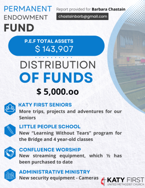 The Permanent Endowment Fund of Katy First United Methodist Church provides a unique opportunity to create a permanent legacy of ministry for future generations.
